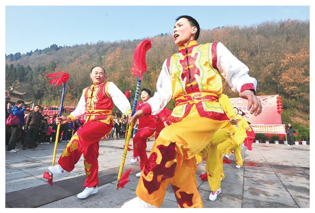基本内容:柏林沟金钱棍,市级非物质文化遗产项目。金钱棍是贫困的劳动人民用于乞讨的一种谋生手段,后来演化为在红白喜事、走亲访友或重大节庆时采用的一种民间艺术形式柏林沟金钱棍的艺术表演形式是说唱、舞棍、舞蹈,它的说唱具有较高的文学艺术价值。柏林沟金钱棍的曲目,往往体现着柏林沟人民在不同历史时期的思想崇尚、美德观念以及新生活新变化等。柏林沟金钱棍的音乐唱腔是采用川北民歌的调子,以叙述性为主而又使叙述性与抒情性相互转换、和谐统一。传统的金钱棍,是以一根细竹竿制作而成,竹竿长100至120厘米,竹竿的两端分节挖空,装上四五个小方孔铜钱钱,竹竿的表面涂以红、黄、兰等色漆,再在两头系上红色的丝带为穗,敲打的时候铜钱互相碰撞发出哗哗的声响,丝带随之飞舞,非常漂亮。发展至今,柏林沟的金钱棍不再是两头挖空放铜钱,而是在两头各挂上几个响亮的铃铛,舞者腰缠红绸,这样在摇敲的时候响声就更加清脆悦耳。柏林沟的金钱棍颇有地方特色,与其他地方的金钱棍完全不同的是,敲击部位有肩、腰、背、臂、肘、两手、两膝、两足总共39个人体穴位,这样在娱乐的同时又能起到保健按摩的作用。技艺较高者还可使其在手心、肩头或背部等处旋转。金钱棍已成为柏林沟镇老老少少都熟知的娱乐方式,并引入中小学作为儿童健身操。